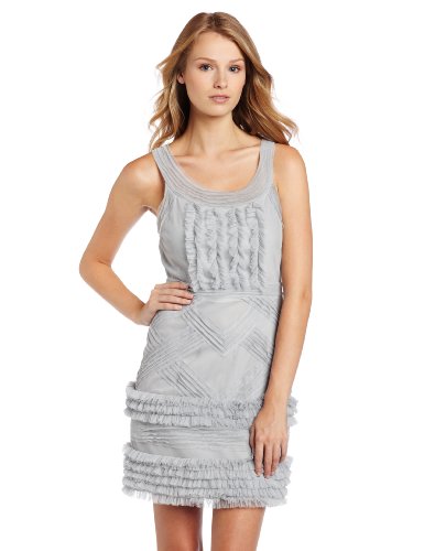 BCBGMAXAZRIA Women's Teagan The Tulle Ruffle Dress, Pearl Grey, 8 Review